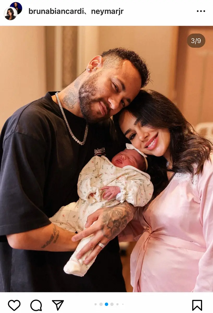 ブルーナは、自身のインスタグラムで「私たちの人生を完成させるマビーエがやってきた ようこそ、お嬢さん!私たちを選んでくれてありがとう」とつづり、ネイマールとともに生まれたばかりの女児を抱いた写真をアップ。