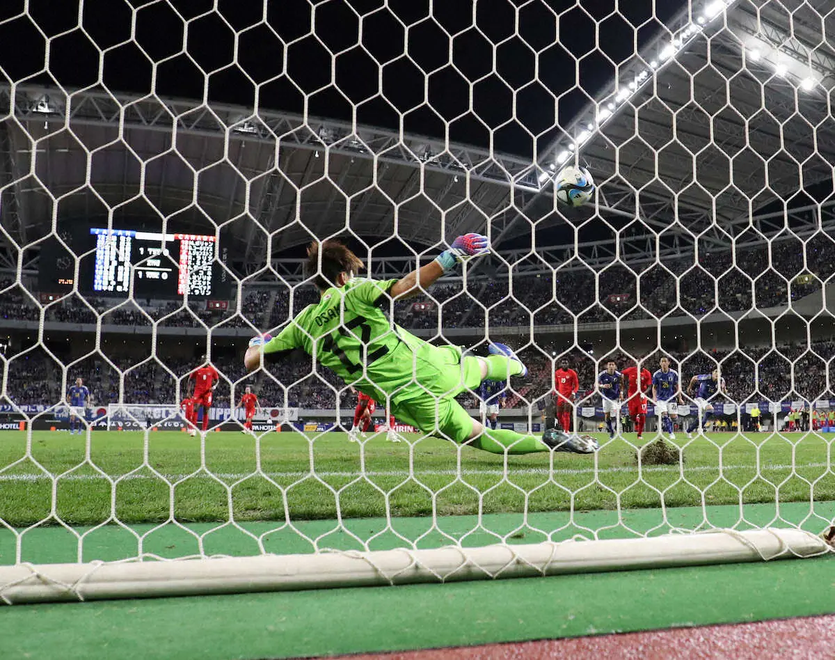 日本代表のGK大迫が、ミスを帳消しにするビッグプレーを見せた。前半22分、MFデービスを倒したとしてPKを献上したが、FWデービットのキックを右足一本でスーパーセーブ。失点すれば一気に浮き足だつ可能性もあったが、鋭い反応でゴールを許さなかった。