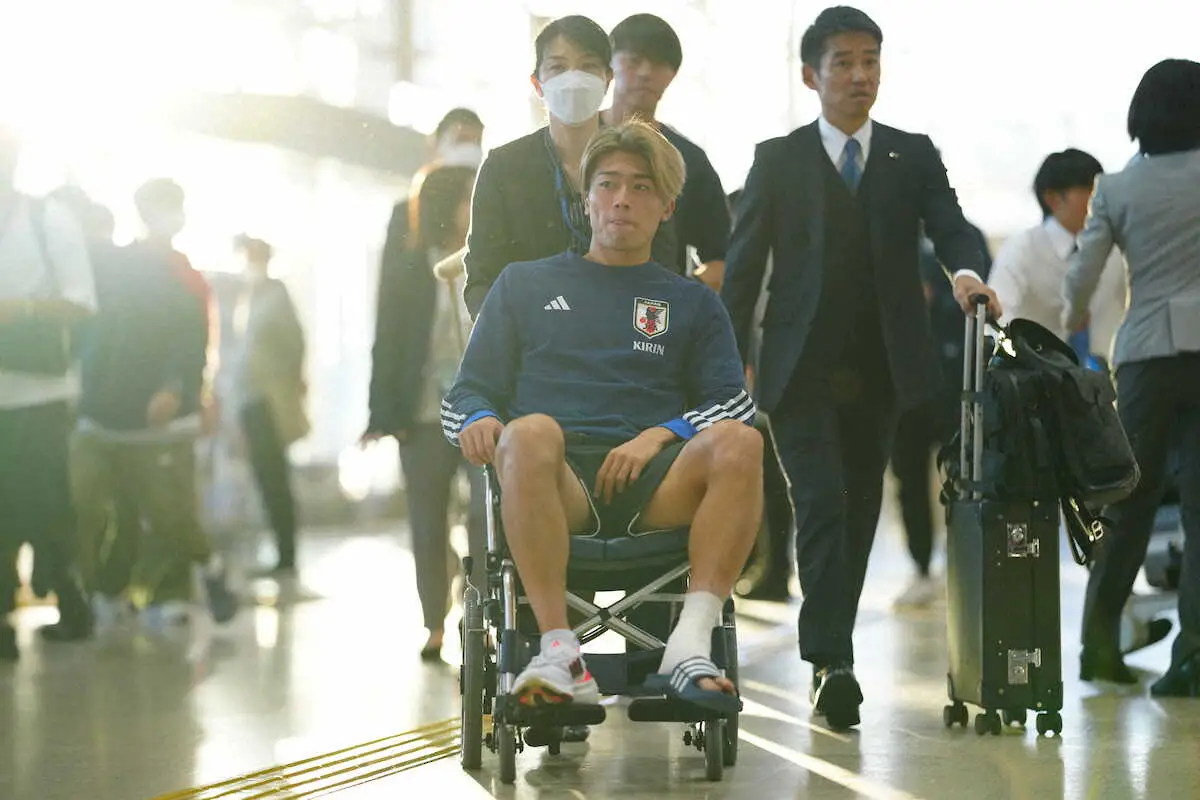 <日本代表移動>車椅子に乗り神戸に向かう中村敬(撮影・小海途 良幹) Photo by スポニチ サッカー日本代表が2戦目の神戸へ移動 中村敬は車いす姿 ギャラリーで見る この記事のフォト 2023年10月14日の画像一覧 もっと見る 2023年10月14日の画像をもっと見る