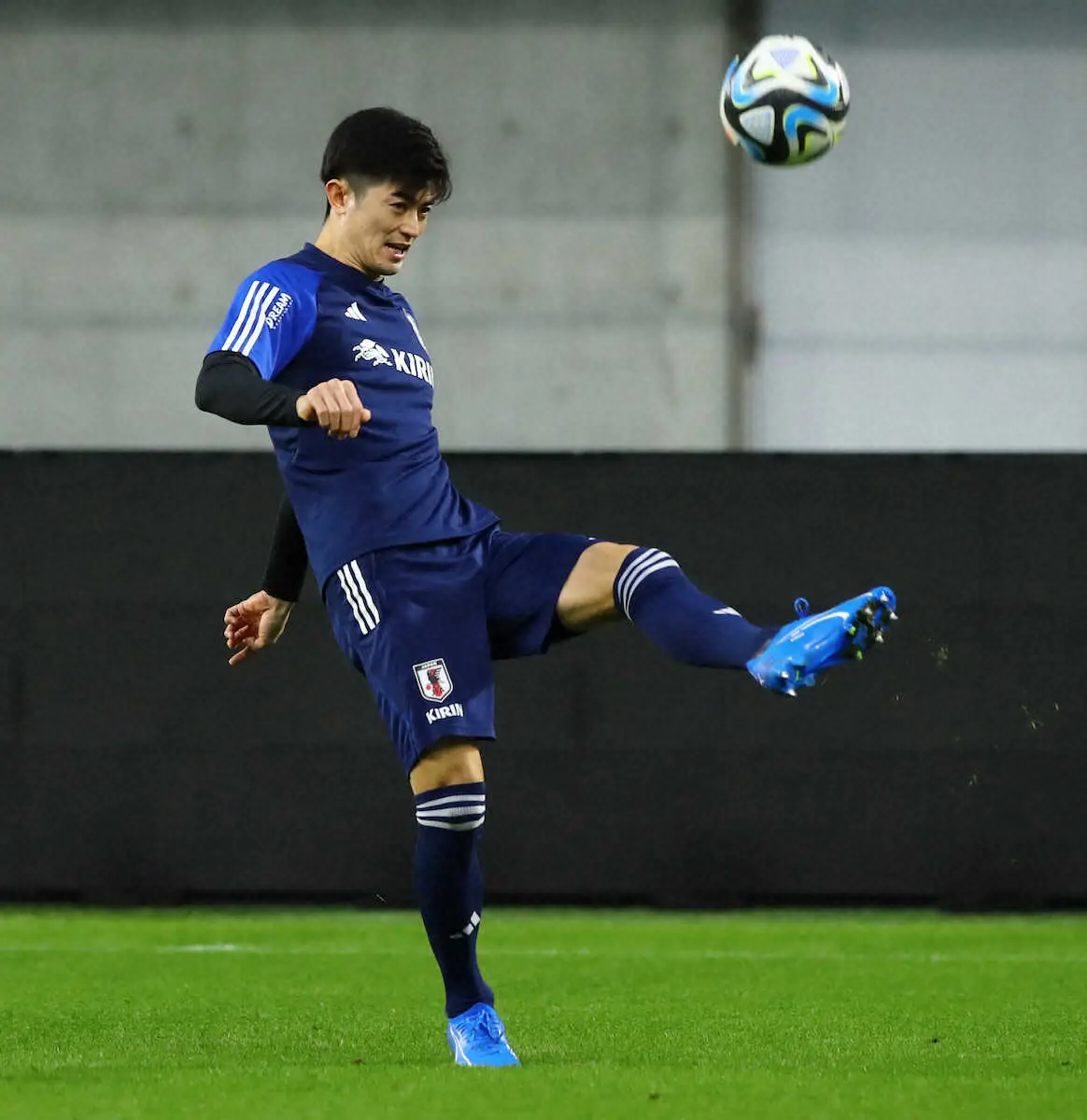 <サッカー日本代表練習> ボールを蹴り上げる谷口 (撮影・後藤 大輝)