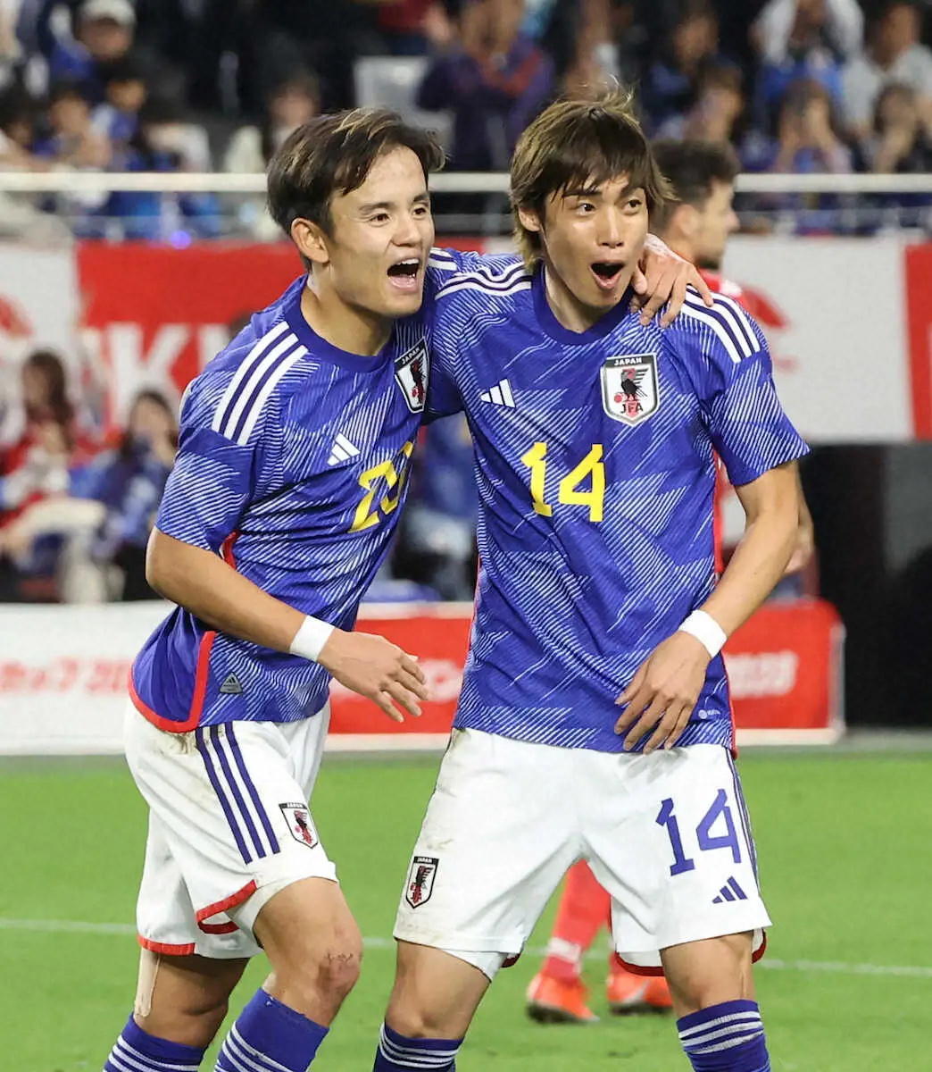 高い技術が凝縮されていた。走り込んだ方向とは逆のゴール右隅に右足で蹴り込んだ。「タケ(久保)がうまく見てくれていたので、あとはふかさないことだけ意識していた」と話す。日本代表では同じ右サイドを主戦場とする“ライバル”久保からのパスを決め、ハイレベルで共存の可能性も見せた。