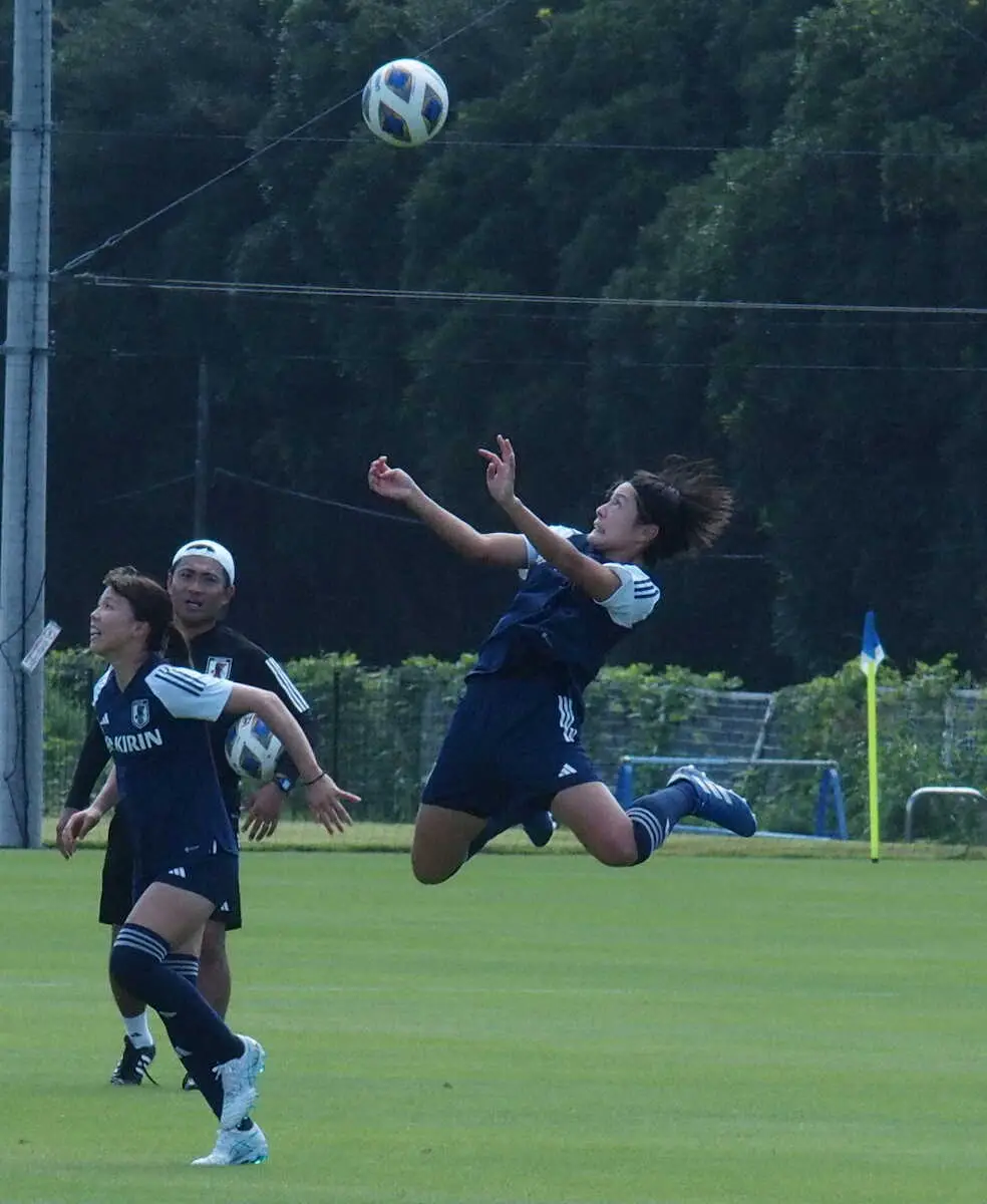 ヘディング練習を行うなでしこジャパンのMF猶本
