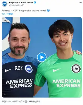 三笘の契約延長にブライトンサポ歓喜!英国でトレンド入り「まだまだ魔法が見られる」 指揮官は「幸せ」