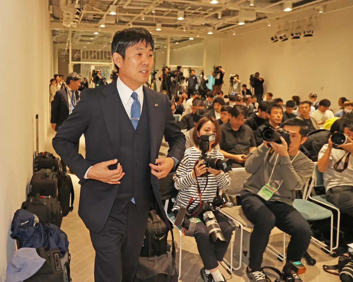 <サッカー日本代表メンバー発表会見>会見に臨む森保監督(撮影・西海健太郎) Photo by スポニチ アジア2次予選に臨む森保ジャパンがメンバー26人を発表 10月の活動で外れ… ギャラリーで見る この記事のフォト 2023年11月08日の画像一覧 もっと見る 2023年11月08日の画像をもっと見る