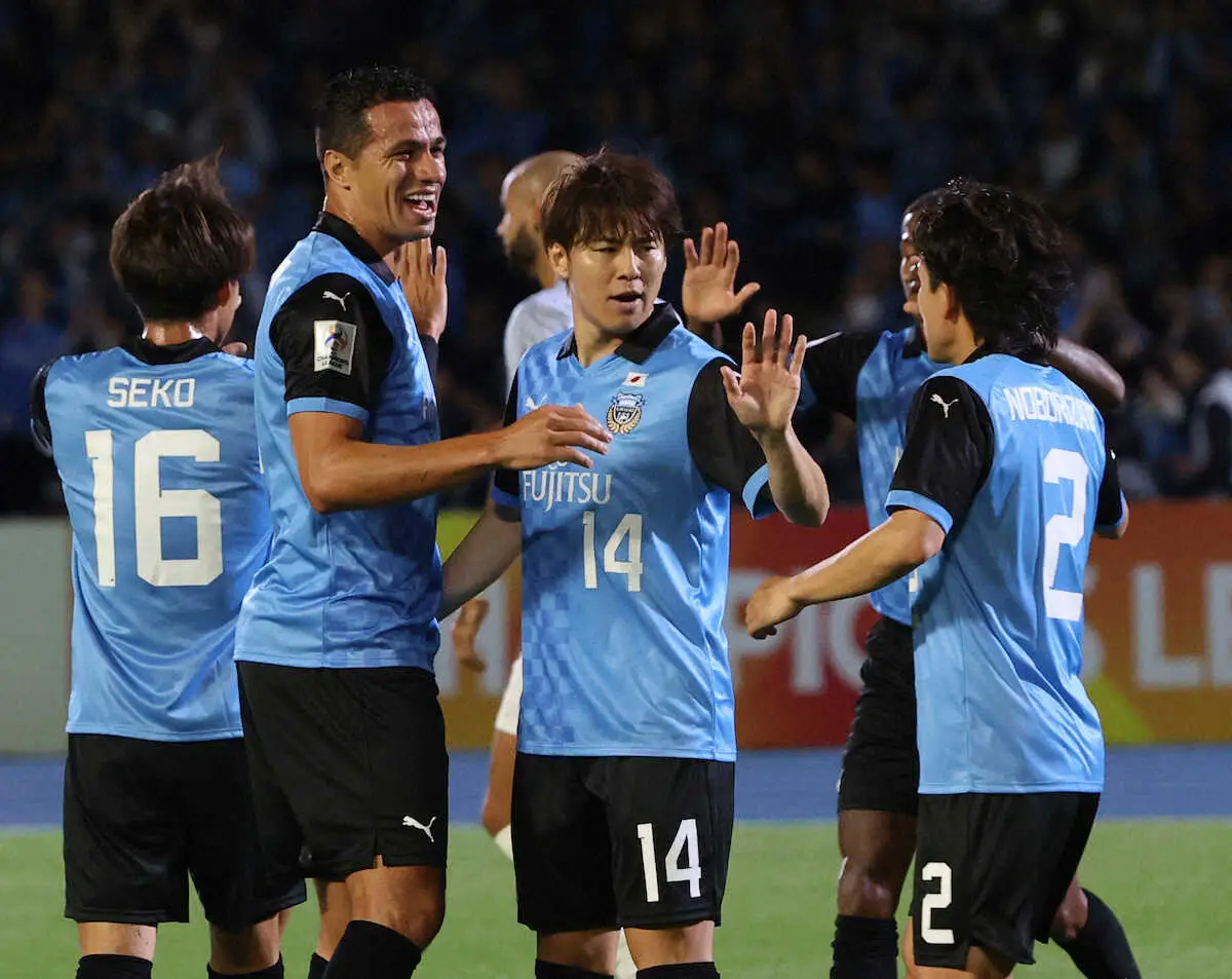 東地区I組首位の川崎FはホームでBGパトゥム(タイ)に4―2で勝ち、開幕4連勝で勝ち点を12に伸ばした。28日のホームのジョホールDT(マレーシア)戦で引き分け以上なら、同組1位で2大会ぶり決勝トーナメント進出が決まる。G組の横浜は敵地でカヤ(フィリピン)に2―1で勝利し、3勝1敗とした。1次リーグは東、西地区とも20チームが5組に分かれ、各組1位5チームと2位の成績上位3チームの計8チームが決勝トーナメントに進出する。