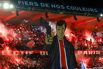 さらにこの一戦では試合前に披露された巨大なコレオも話題に。前節の敵地でのパリSG戦、相手サポーターが一昨年に亡くなったフランスの名俳優ジャン・ポール・ベルモンドが銃を構える映画のワンシーンをオマージュした巨大なコレオを披露。クラブの象徴である「赤い悪魔」を撃ち抜く様子が表現されるという“挑発”を受けていた。