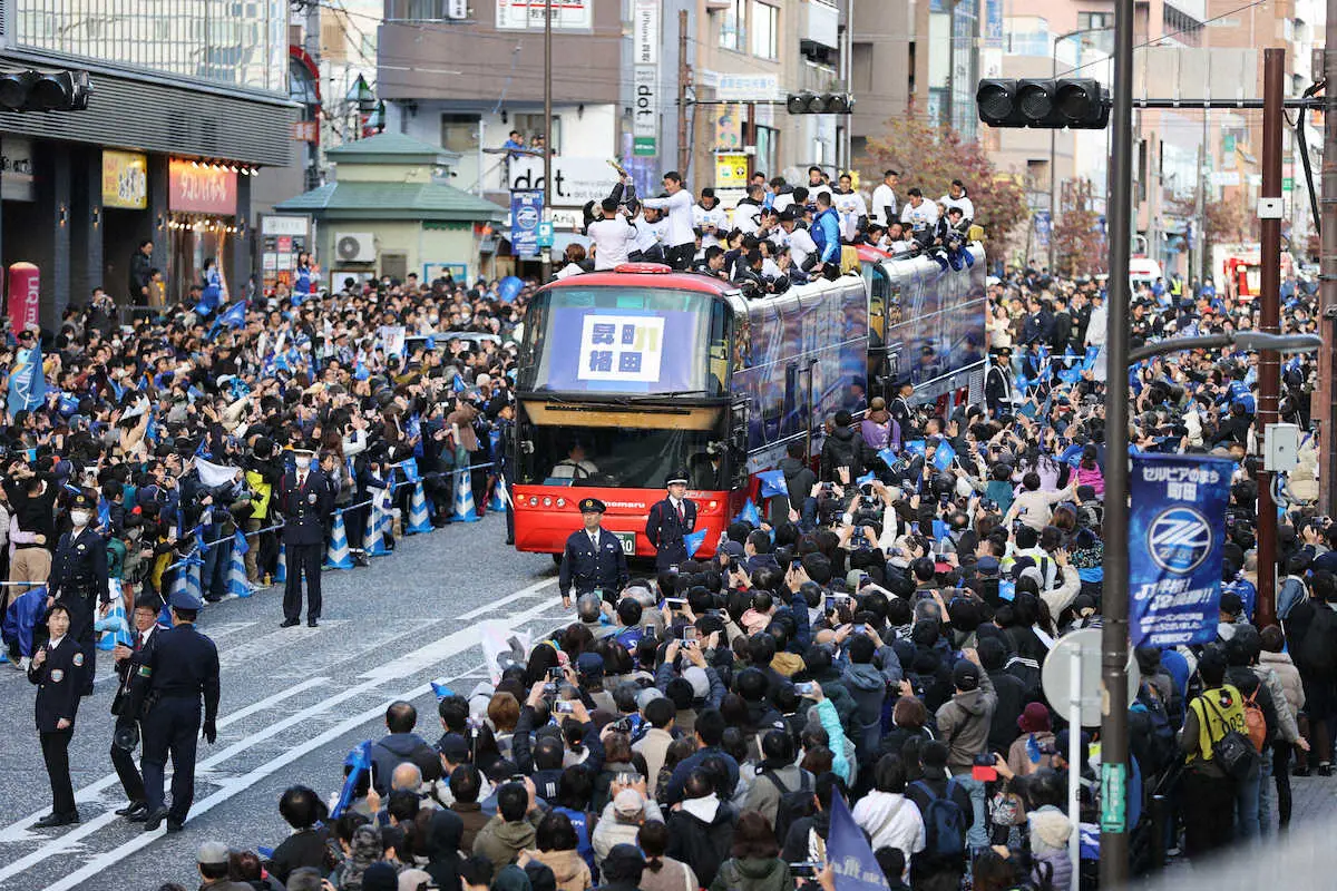 <町田ゼルビアパレード>バスの上から手を振る(手前左から)引退する太田宏介、奥山主将、藤田社長、黒田監督、谷原章介(撮影・篠原岳夫) Photo by スポニチ 町田がJ2優勝&J1昇格記念パレードで約8000人祝福 黒田監督「町田を東京… ギャラリーで見る この記事のフォト 2023年11月18日の画像一覧 もっと見る 2023年11月18日の画像をもっと見る