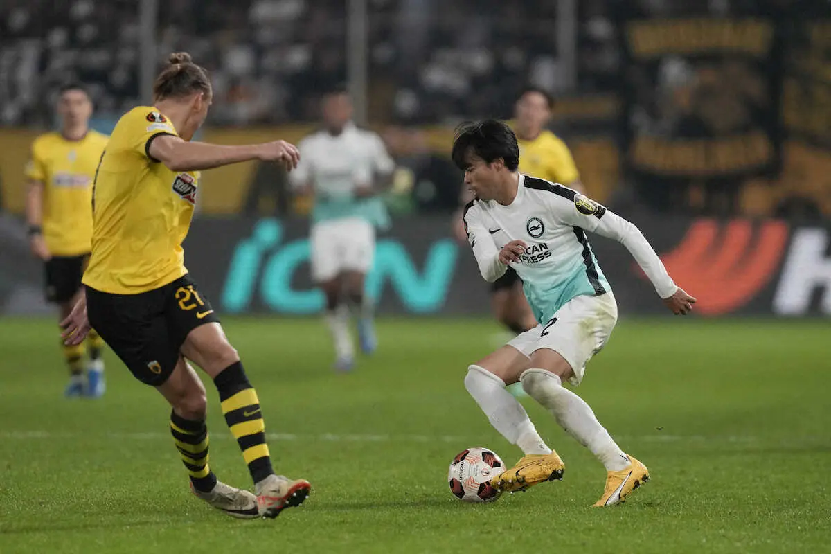 ブライトンのMF三笘薫(26)はAEKアテネ戦で後半24分まで出場。チームは1―0で勝利し、1次リーグ突破を決めた。