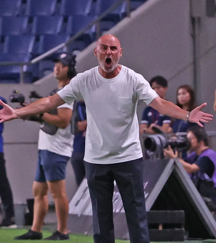 大声で叫ぶ横浜・マスカット監督