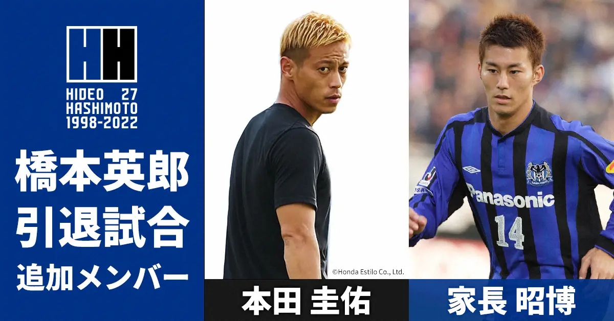 G大阪は16日午後2時キックオフの「橋本英郎引退試合」に本田圭佑氏と川崎Fの家長昭博の参加が決定したと発表した。
