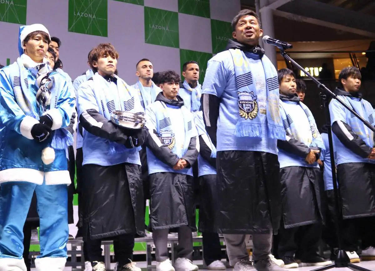 川崎Fを退団しサポーターから寄せ書きを受け取るFWレアンドロ・ダミアン(左)とMFジョアン・シミッチ Photo by スポニチ 川崎Fが天皇杯優勝報告会 退団のダミアン&シミッチがファンにお別れ、話… ギャラリーで見る この記事のフォト 2023年12月14日の画像一覧 もっと見る 2023年12月14日の画像をもっと見る