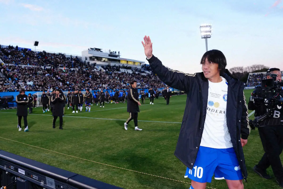 <中村俊輔引退試合>声援に応える中村俊輔(撮影・西尾 大助)