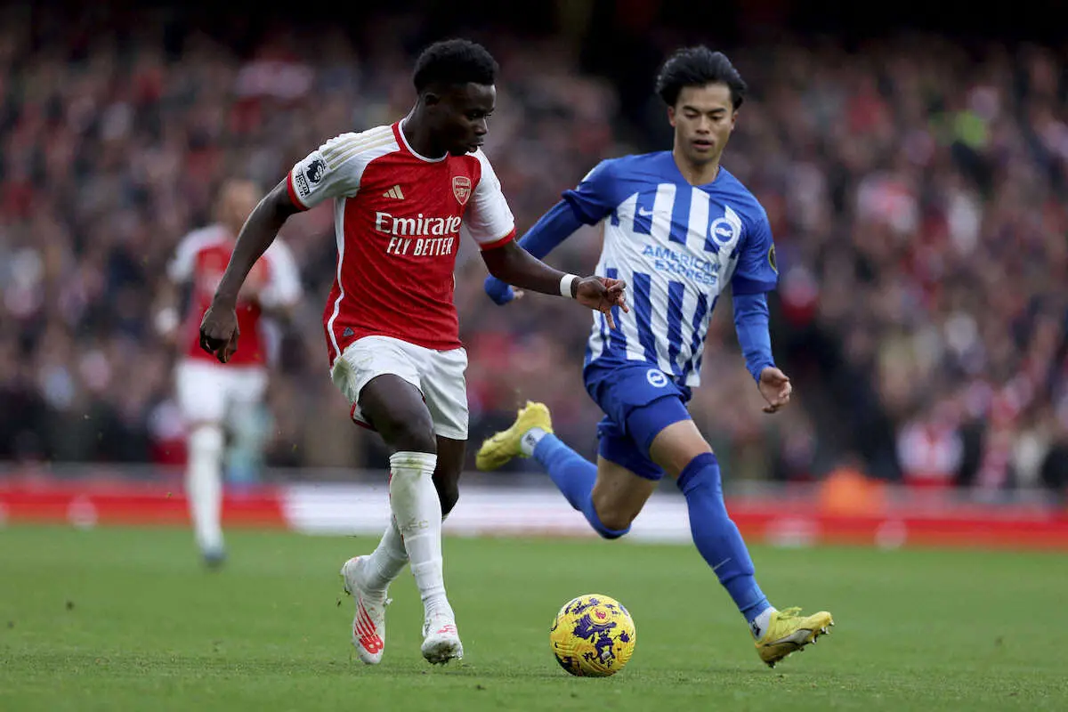 勝ったアーセナルは日本代表DF冨安健洋(25)が左ふくらはぎの負傷で欠場したが、他会場でマンチェスター・ユナイテッドと引き分けたリバプールをかわして首位に再浮上。三笘は会場で冨安と言葉を交わしたといい「アジア杯には来てほしいと言った。急がずにしっかり治してほしい」と気遣った。