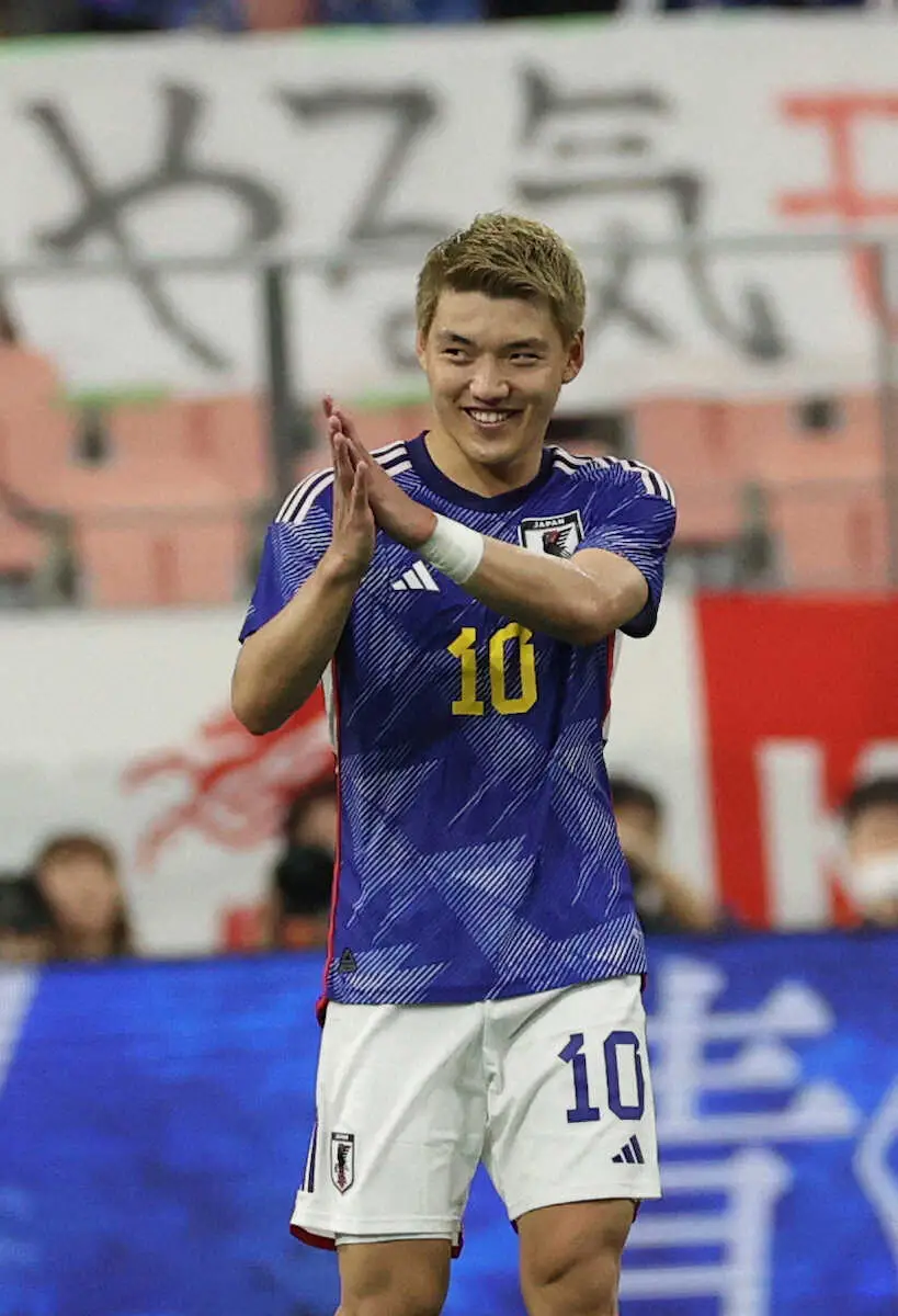 日本サッカー協会は27日、来年1月1日に国立競技場で行われる国際親善試合タイ戦に臨む日本代表の背番号を発表した。堂安律(25=フライブルク)が10番を背負う。初選出のMF伊藤涼太郎(25=シントトロイデン)は7番、J2から異例の追加招集となった三浦颯太(23=甲府)は24番となった。