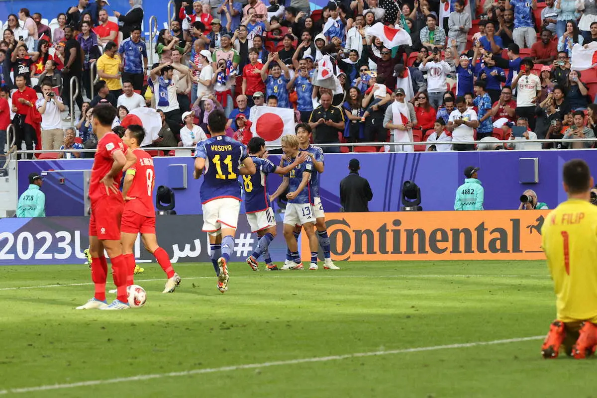 <アジア杯 日本・ベトナム>前半、逆転ゴールを決め喜ぶMF中村敬(右手前)(撮影・西海健太郎) Photo by スポニチ 日本代表 南野2発&中村敬が勝ち越し弾!アジア杯初戦から“壮絶な撃ち合い… ギャラリーで見る この記事のフォト 2024年01月14日の画像一覧 もっと見る 2024年01月14日の画像をもっと見る
