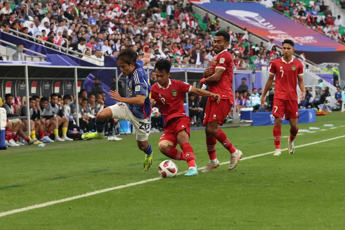 アジア杯で3大会ぶり5度目の優勝を目指す男子サッカー日本代表(世界ランク17位)は24日、1次リーグD組第3戦でインドネシア代表(同146位)に3―1と勝利。1989年6月11日のW杯イタリア大会アジア1次予選(〇5―0)以来35年ぶりとなった対戦を制し、同組2位での突破を決めた。決勝トーナメント1回戦では、31日にE組1位との対戦が決まった。