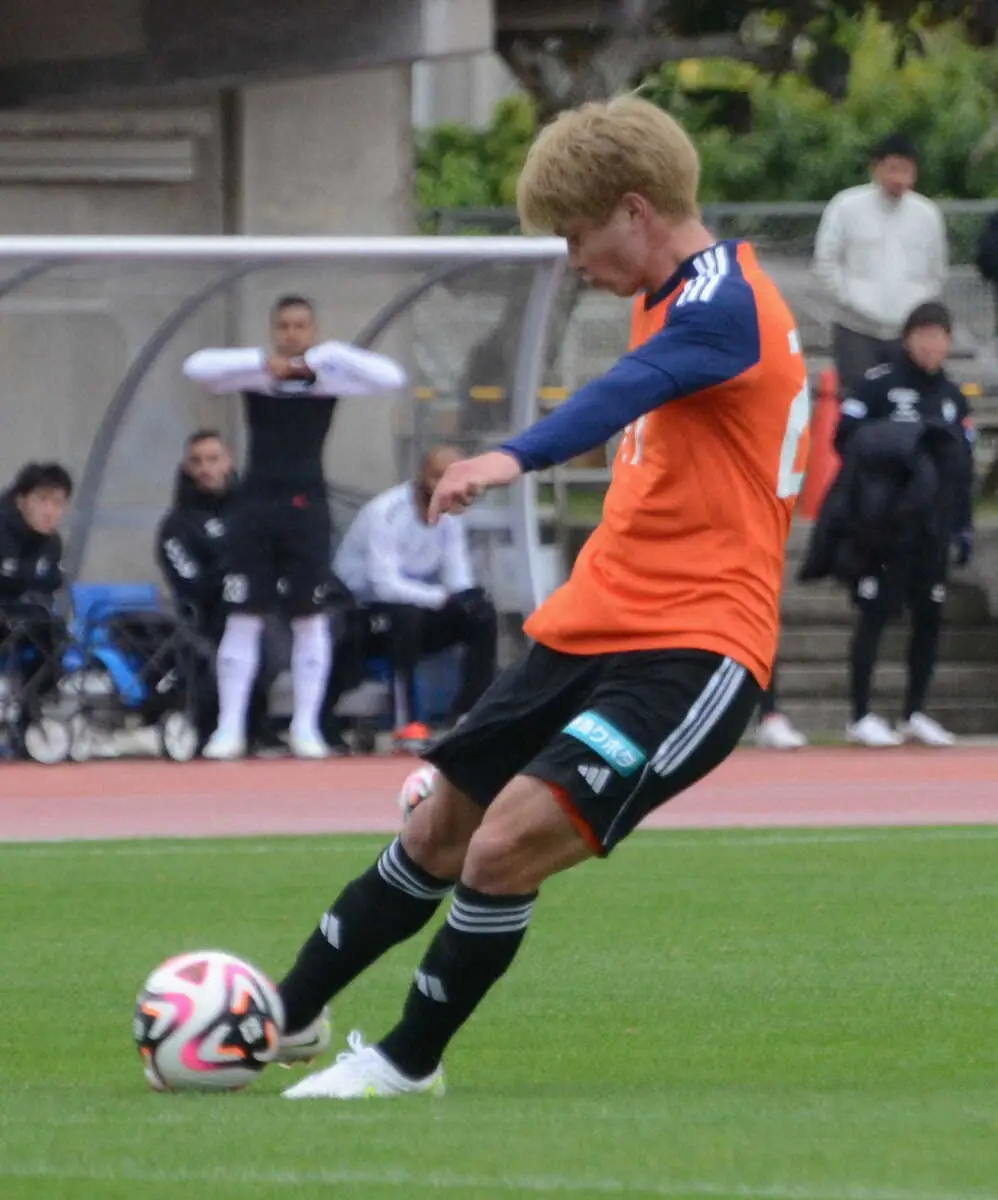 昨季の主力メンバーで臨んだ1本目はなかなかチャンスをつくれずに0―0。2本目に出場した長倉は、失点直後の22分、FW谷口が相手にプレッシャーをかけて奪ったボールのこぼれ球に反応。素早く右足を振り抜いた。「海斗君(谷口)がいいプレッシャーをかけてくれてボールが来たので、風のおかげもあったけど決まって良かったです」と笑顔を見せた。