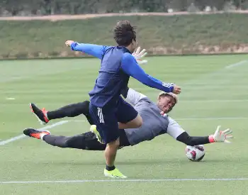 <サッカー日本代表練習>練習に汗を流す細谷(撮影・西海健太郎)