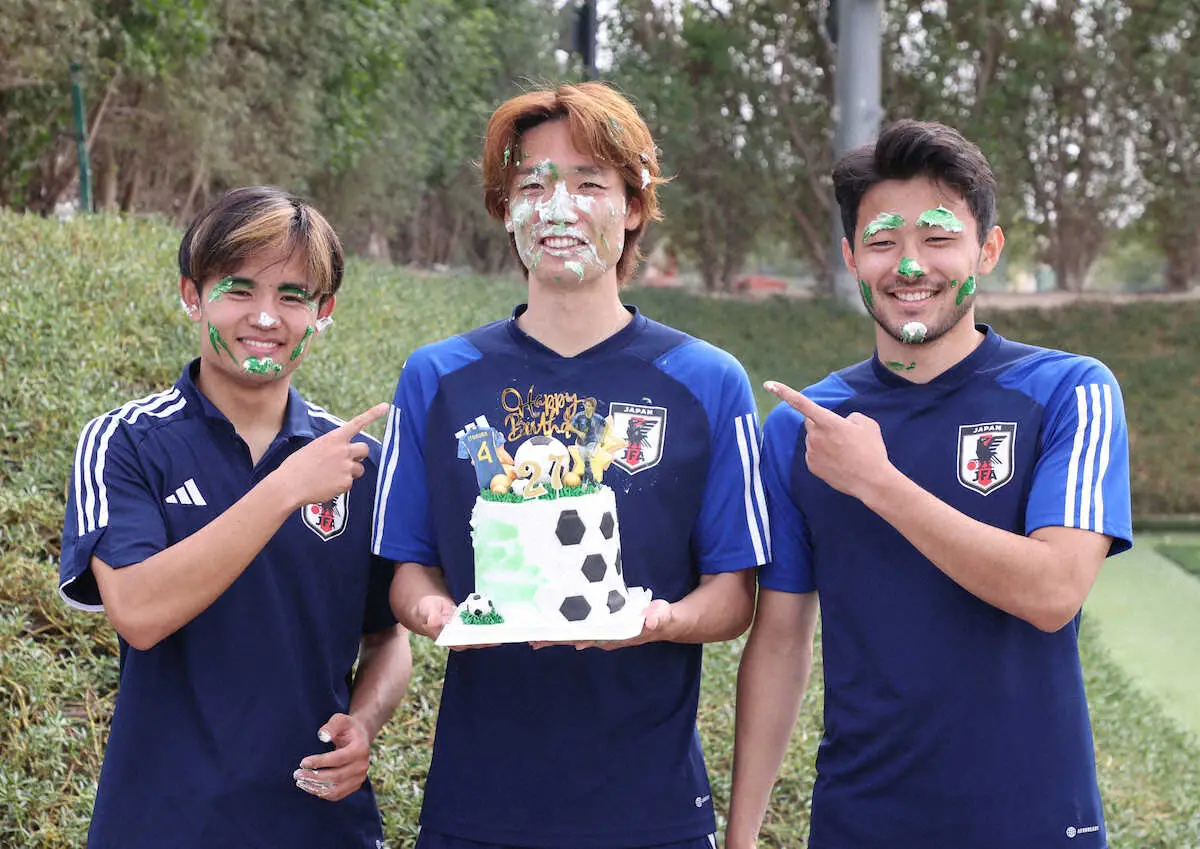 ボルシアMGの黄緑色に顔を染めた板倉が、照れくさそうに笑った。バースデーケーキを持って登場した久保と菅原にクリームを塗りたくられた。インドネシア戦は体調不良で欠場したが、もう問題ない。新たな決意に満ちあふれていた。