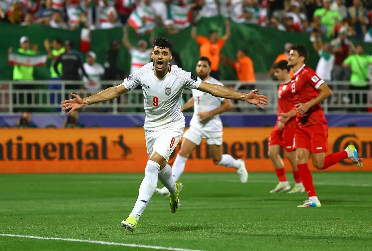 <アジア杯決勝T1回戦 イラン・シリア>前半、PKから先制ゴールを決め喜ぶイラン代表FWタレミだったが…後半退場となり次戦出場停止に(ロイター)