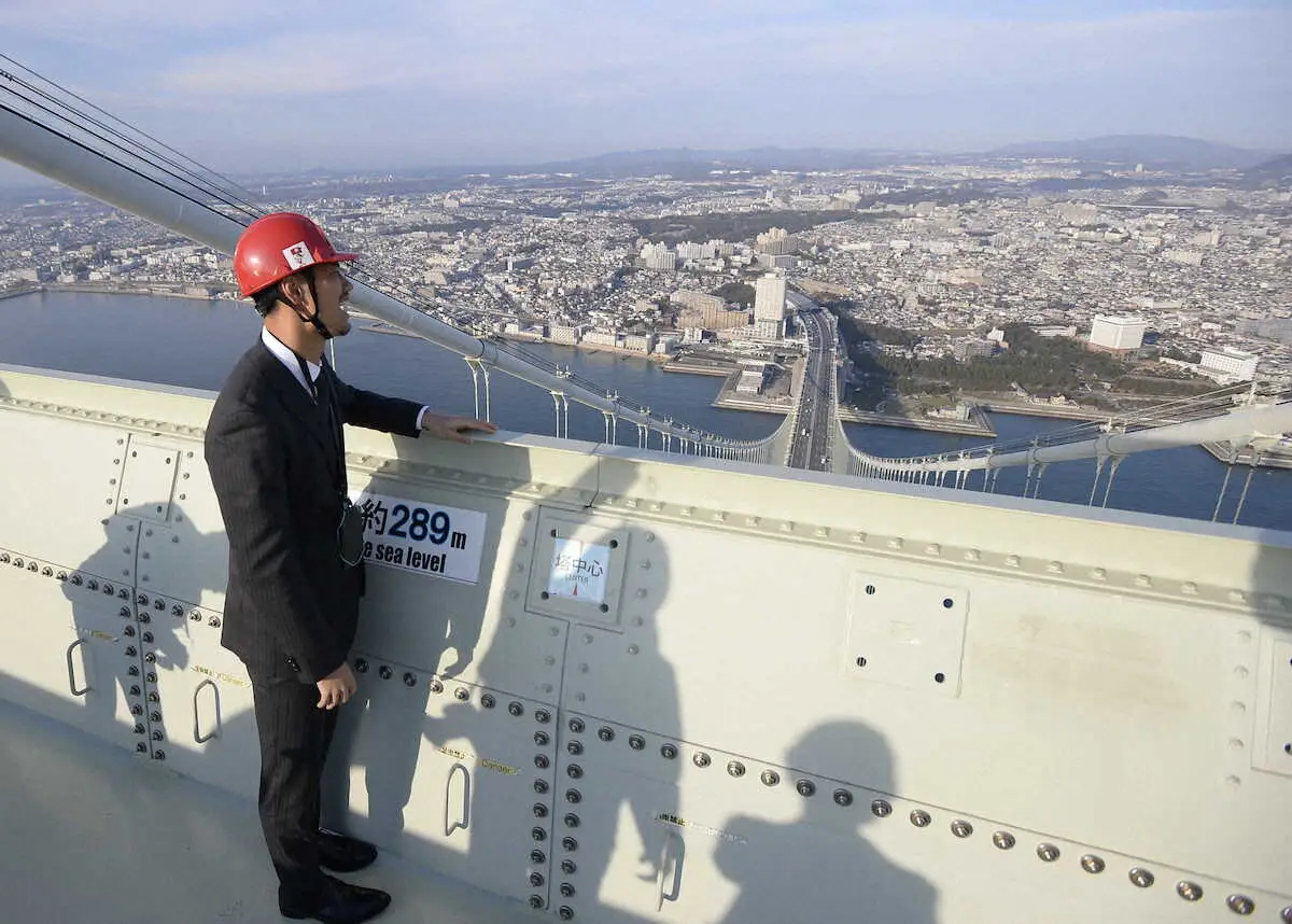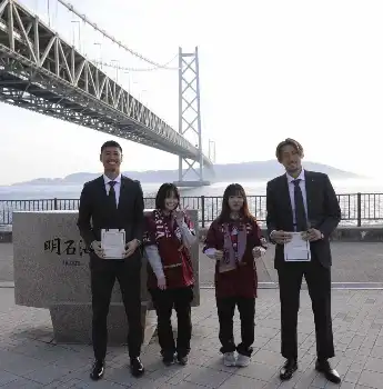 その後に12グループに分かれて各所を表敬訪問する「一致団結プロジェクト」を実施した。日本代表GK前川黛也(29)とDF菊池流帆(27)は、神戸市垂水区の「橋の科学館」を訪問。明石海峡大橋の中心、海面から289メートルの塔の最上部から、リーグ連覇に向け、抱負を絶叫した。