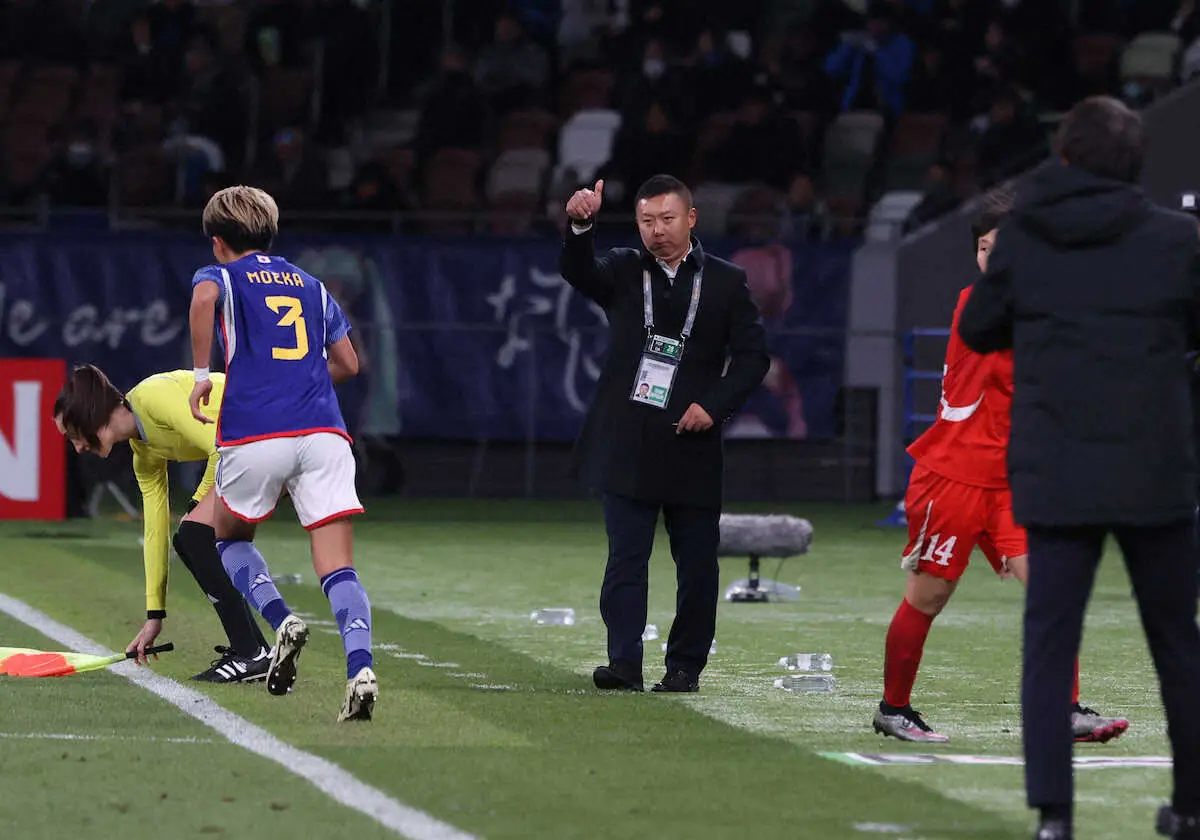 北朝鮮は前半26分に先制点を許すと、前半終了間際にはペナルティーエリア右でボールを受けたMFリ・ハクがグラウンダーのクロスをゴール前へ。エリア内のMFチェ・クンオクがヒールで合わせたが、日本のGK山下が体を伸ばしてゴールライン上でボールをかき出す執念のセーブ。決定的なチャンスを決められず、0―1で前半を折り返した。