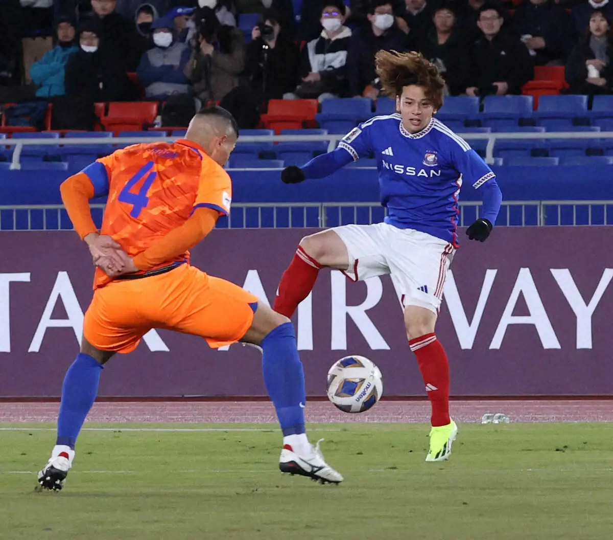 <ACL 横浜・山東>前半、試合に臨む横浜・永戸(撮影・西海健太郎)