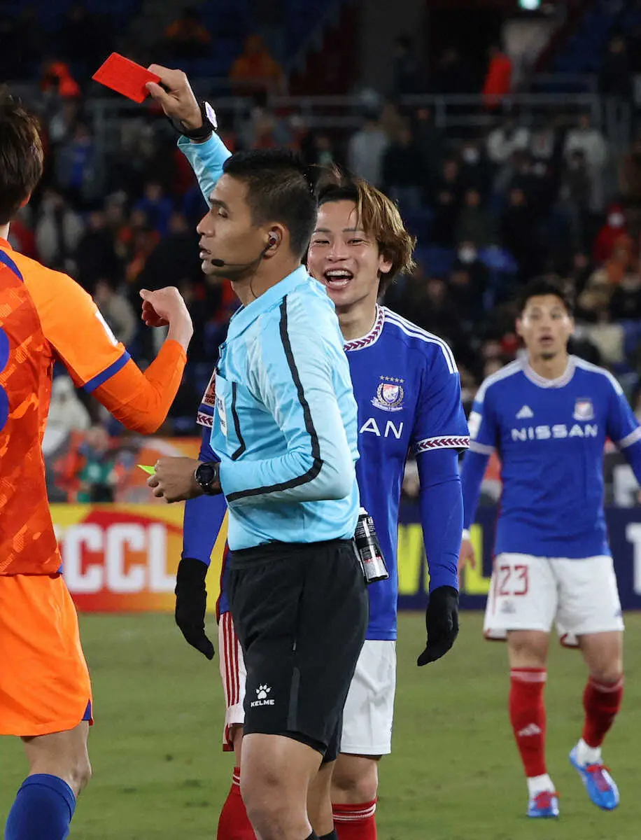 <ACL 横浜・山東>後半、退場となった横浜・永戸(撮影・西海健太郎)