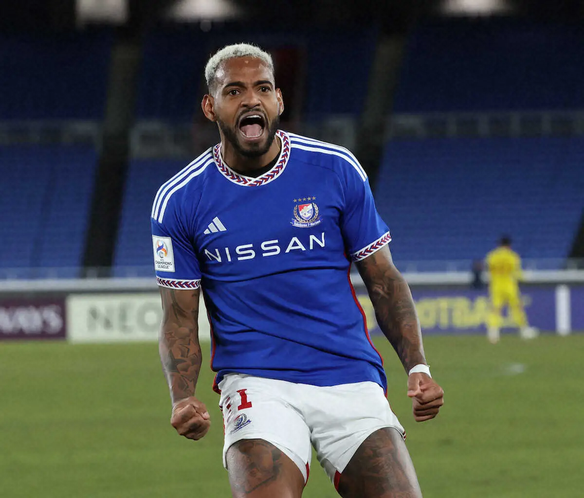 <ACL 横浜・山東>後半、ゴールを決め喜ぶ横浜・アンデルソン・ロペス(撮影・西海健太郎)