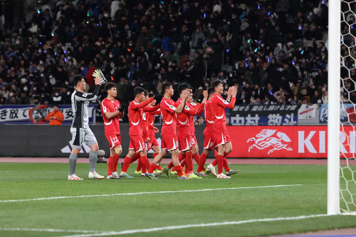 FIFAランク114位の北朝鮮代表は21日、W杯アジア2次予選B組第3戦(国立)で同18位のサッカー日本代表(森保ジャパン)と対戦。開始2分で日本代表・田中碧に得点を許したが、その後は一進一退の攻防となり、敗れたものの敵地で0-1と健闘を見せた。