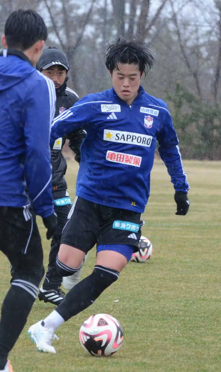 新潟はオフ明けの26日、聖籠町のアルビレッジで30日のホーム柏戦に向けた練習を行った。大卒ルーキーのDF森璃太(22)は、この日行われた早大の卒業式を欠席して練習に参加。柏戦でプロデビューを飾ろうと自慢のスピードを武器にアピールしている。