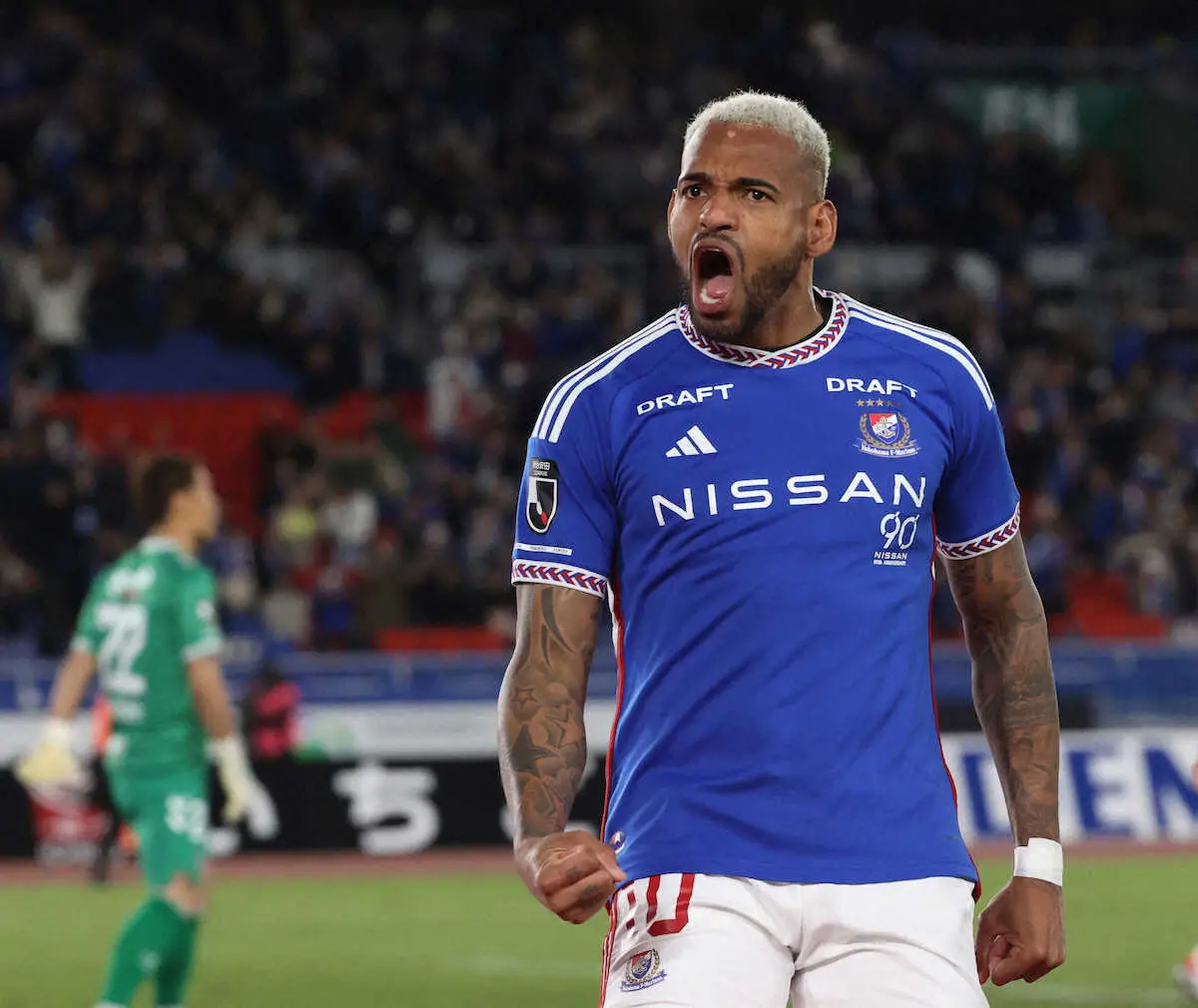 ゴールを決めた相手GKは、昨季チームメートだった一森純(32)。試合後には一森が横浜のロッカールームにあいさつに来たようで「彼からはナイスゴールという言葉をもらって、僕はありがとうと同時に、ごめんなさいと言いました」と明かし、「去年まではチームメイトで、切磋琢磨してタイトルのために戦っていた仲間だった。今年は別々のチームなので、今日は僕たちが勝てて良かったと思います」と冗談交じりに話した。