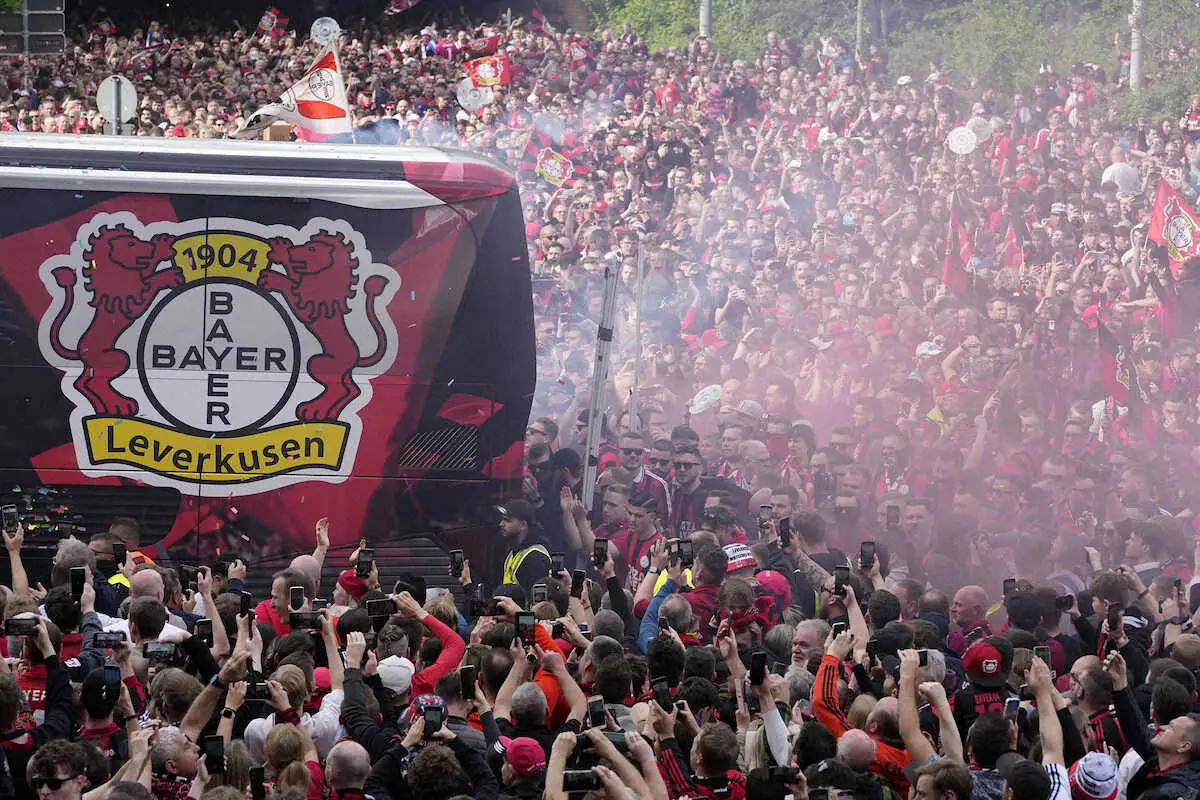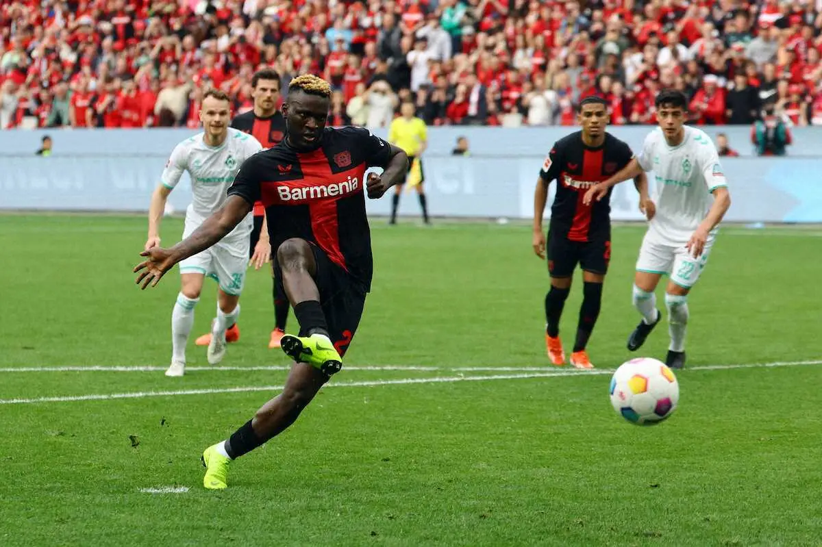 <レバークーゼン・ブレーメン>前半、FWボニフェイス(左から3人目)が先制ゴールを決め喜ぶレバークーゼンイレブン(ロイター) レバークーゼン悲願の初優勝!バイエルン12連覇阻む 開幕29戦負けなしリー… ギャラリーで見る この記事のフォト 2024年04月15日の画像一覧 もっと見る 2024年04月15日の画像をもっと見る
