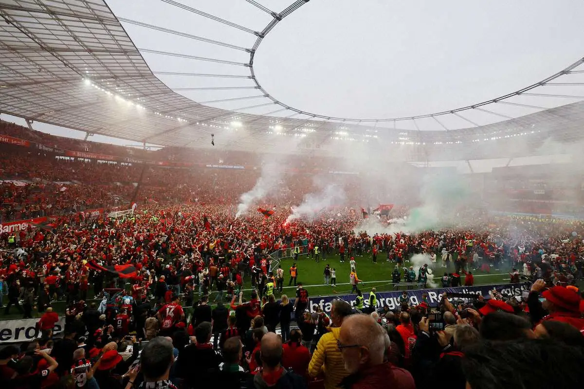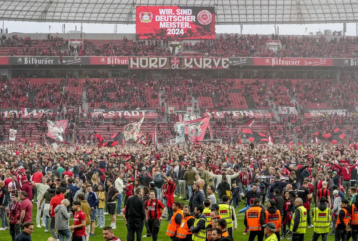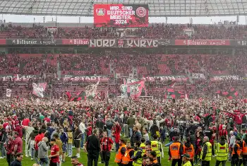 チャンピオンシップトロフィーを掲げるレーバークーゼン・シャビアロンソ監督(中央)ら(AP) Photo by AP 創設120年のレーバークーゼン 悲願の初優勝 「ネバークーゼン」皮肉吹き… ギャラリーで見る この記事のフォト 2024年04月16日の画像一覧 もっと見る 2024年04月16日の画像をもっと見る