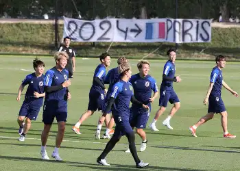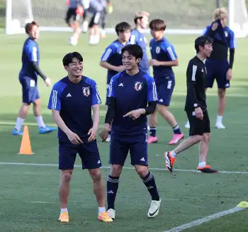 笑顔で練習する山田楓(左から2人目)=撮影・小海途 良幹