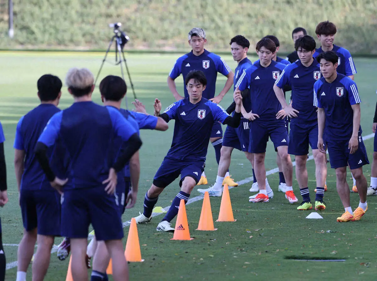 <U-23アジア杯前日練習>練習する山田楓(右)と半田(撮影・小海途 良幹) Photo by スポニチ 【五輪最終予選】U―23日本代表、準々決勝・カタール戦へ最終調整 大岩監… ギャラリーで見る この記事のフォト 2024年04月24日の画像一覧 もっと見る 2024年04月24日の画像をもっと見る