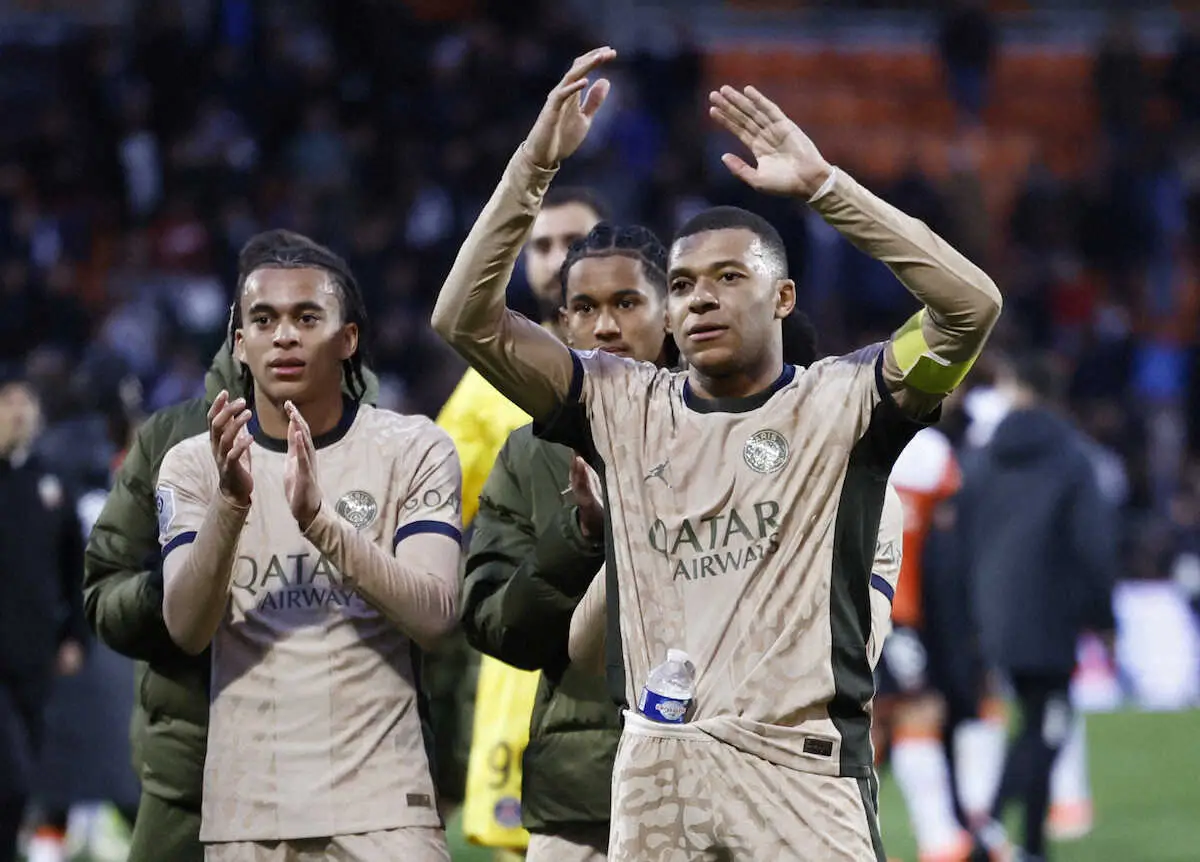 フランス1部首位のパリSGが24日、敵地でのロリアン戦に4―1と快勝。別会場で2位モナコがリールに勝利したため優勝決定はお預けとなったが、3連覇達成まであと1勝に迫った。フランス代表FWキリアン・エムバペ(25)が2得点1アシストと大活躍。弟のMFイーサン・エムバペ(17)は後半28分から出場し、リーグ戦2度目の“兄弟共演”を果たした。