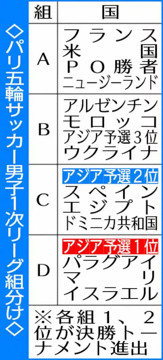 パリ五輪の組分けは決勝の結果で大きく左右される。日本は優勝すればパラグアイなどと同じD組、準優勝ならスペインなどとC組に入る。