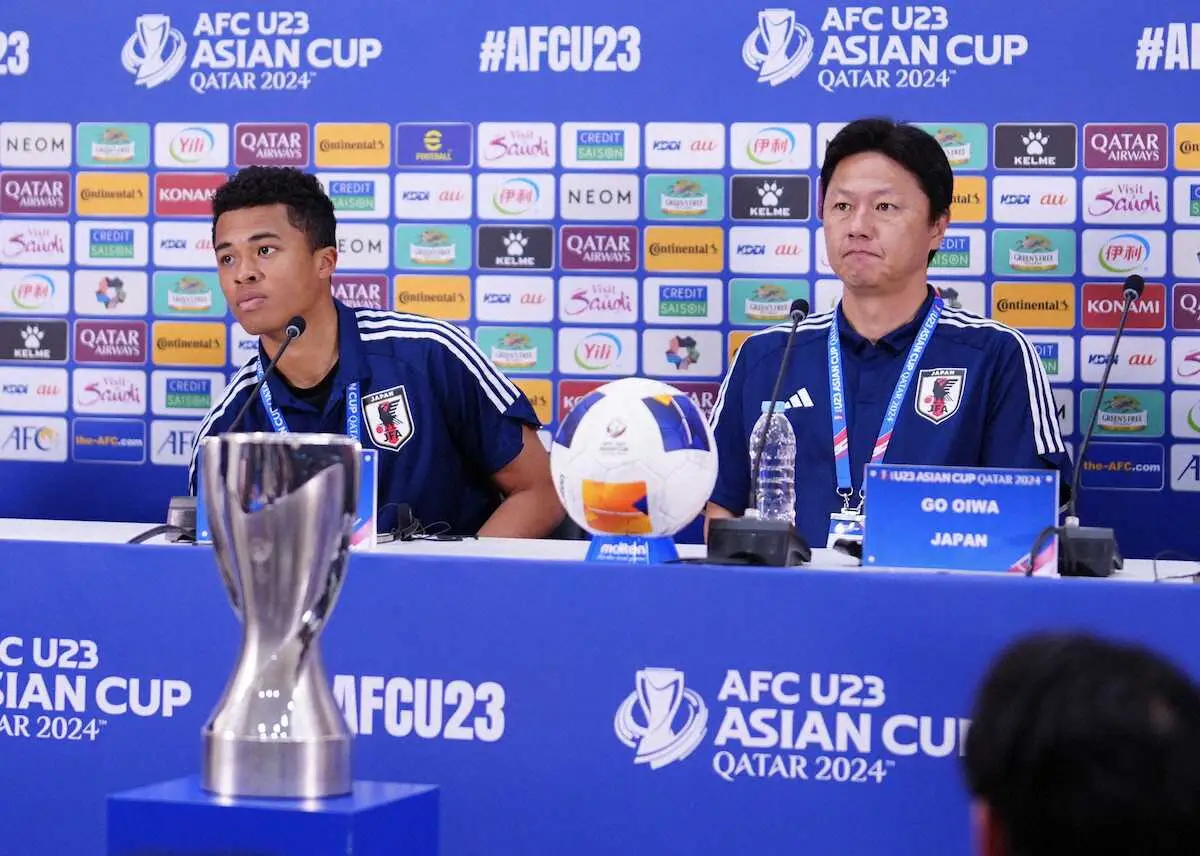 サッカー男子で8大会連続五輪出場権を獲得したU―23日本代表は3日(日本時間4日)、16年年大会以来2度目の優勝を目指し、ドーハのジャシム・ビン・ハマド・スタジアムで決勝のU―23ウズベキスタン代表戦に臨む。2日は会場で前日会見が行われ、大岩剛監督(51)とMF藤田譲瑠チマ主将(22=シントトロイデン)が出席し、意気込みを語った。