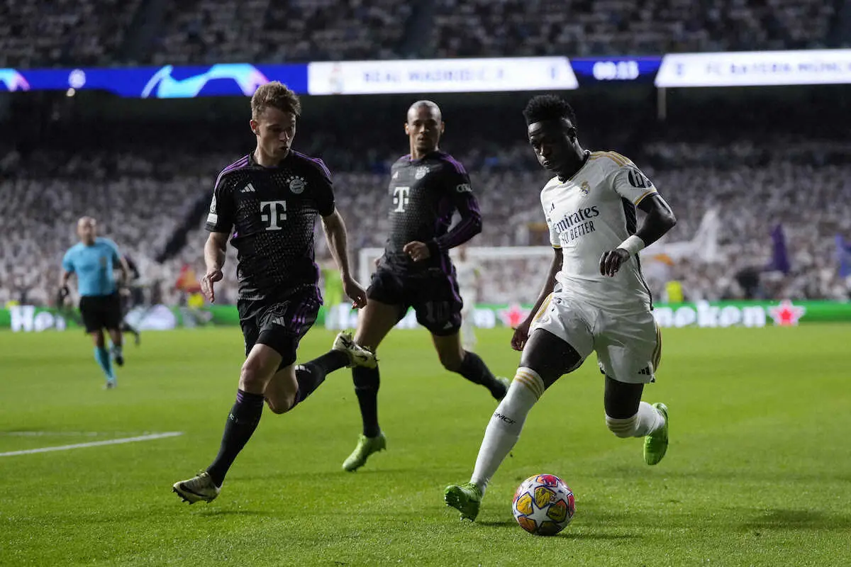 <欧州CL準決勝第2戦 Rマドリード・Bミュンヘン>決勝進出を決め、喜ぶアンチェロッティ監督(中央)らRマドリードイレブン(ロイター) 【欧州CL】Rマドリード 88分からFWホセル2発で劇的大逆転勝利 激闘制し2… ギャラリーで見る この記事のフォト 2024年05月09日の画像一覧 もっと見る 2024年05月09日の画像をもっと見る