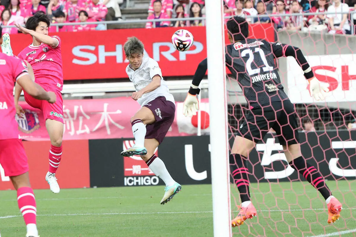 <C大阪・神戸>後半4分、CKから大迫(中央)が追加点(撮影・長嶋 久樹)