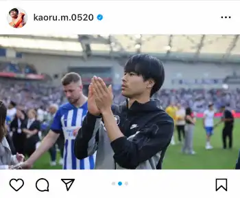 三笘薫 インスタで今季終了をファンに感謝 退任のブライトン指揮官とは夫婦でハグして別れ