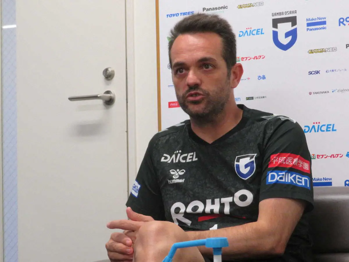 練習後、報道陣の質問に答えるG大阪のダニエル・ポヤトス監督