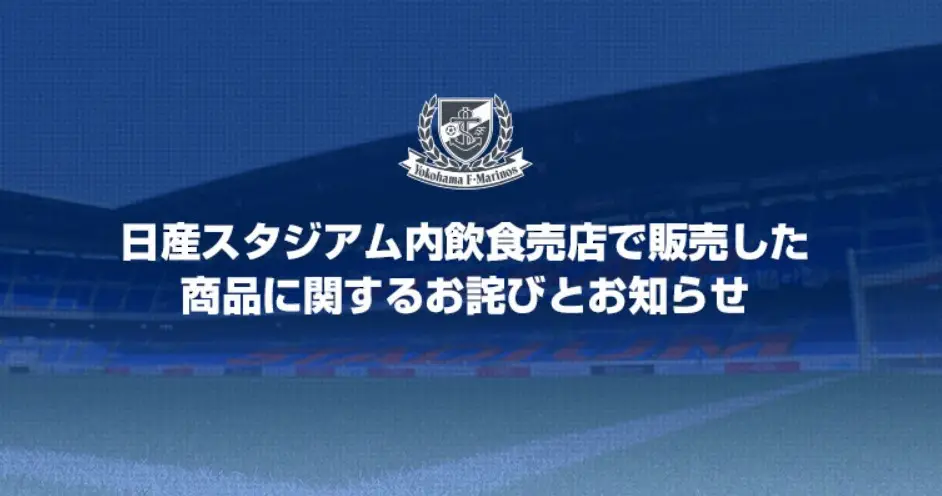 横浜F・マリノスは30日、公式サイトを通じ、今月29日に日産スタジアムで行われた明治安田J1リーグ第9節の柏戦で販売した飲食物について「一部カビが生えたものを提供していた」として謝罪した。