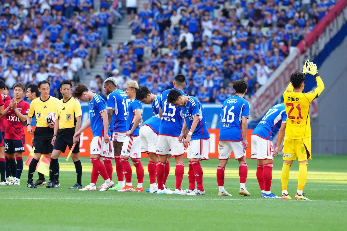 <鹿島・横浜>鹿島に敗れた横浜イレブン(撮影・西尾 大助)