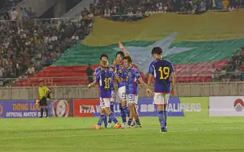 <W杯アジア2次予選>シンガポール戦でゴールを決め喜ぶ韓国代表FWソン・フンミン(AP)