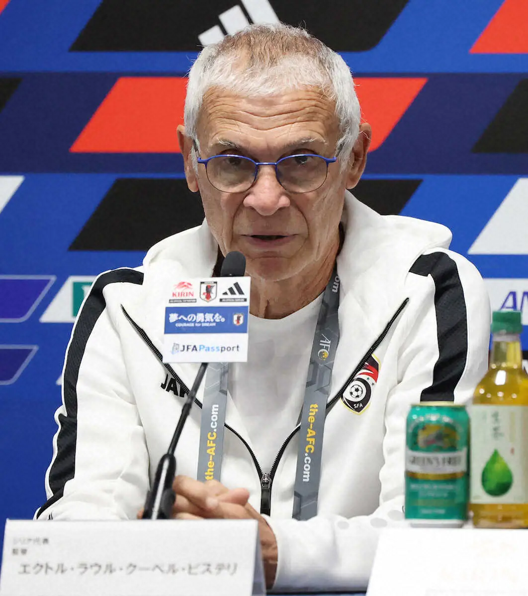 サッカー・シリア代表のエクトル・クーペル監督(68)が10日、W杯アジア2次予選日本戦の公式会見に出席。「日本のポテンシャルは十分に分かっています。非常に難しい試合になると思いますけど、決して希望は捨てていません。サッカーでは保証されている結果はないからです。明日、私たちは全力で戦って、勝利を狙いにいきたいと思います」と話し、勝利を期した。
