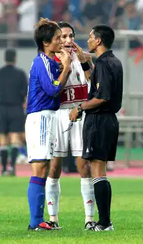04年アジア杯準々決勝ヨルダン戦で日本は1―1のままPK戦に突入。1人目と2人目が連続で失敗するという敗退危機に陥った。ここで宮本主将は日本選手が芝がはがれて足を滑らしていたこともあり、主審に対しサイドを替えるように英語でアピール。それが認められ、奇跡的に日本がPK戦を4―3で制して薄氷の勝利。同大会優勝の“立役者”になった。