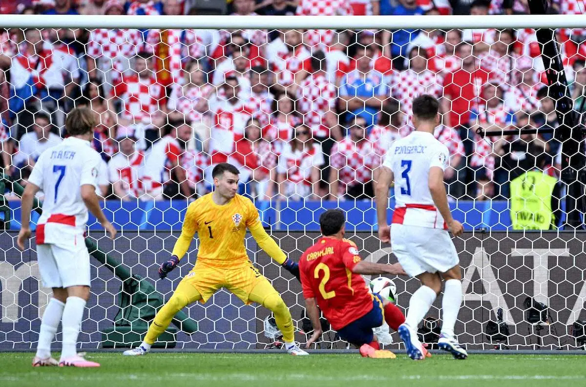 <欧州選手権 スペイン・クロアチア>前半、ゴールを決めたDFカルバハル(右から2人目)を祝福するスペイン代表FWヤマル(右)ら(ロイター) 【欧州選手権】スペイン代表16歳ヤマル 大会最年少出場でアシスト記録も… ギャラリーで見る この記事のフォト 2024年06月16日の画像一覧 もっと見る 2024年06月16日の画像をもっと見る