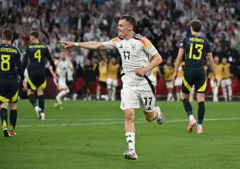 サッカーの24年欧州選手権ドイツ大会が14日に開幕。7大会ぶり4度目の優勝を狙う開催国ドイツは、1次リーグA組初戦でスコットランドに5―1と快勝。先発出場したMFフロリアン・ウィルツ(21=レーバークーゼン)が前半10分に先制ゴールを決めると、MFジャマル・ムシアラ(21=Bミュンヘン)が同19分に追加点を決めるなどドイツの将来を期待される“21歳の至宝コンビ”が躍動し白星発進に貢献した。